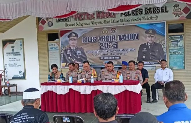 Hal tersebut disampaikan Kapolres Barsel AKBP Jecson R Hutapea, SIK, MH saat memimpin kegiatan press release akhir tahun 2025, didampingi Wakapolres Kompol Tommy, Kasatreskrim AKP Doni, serta para pejabat utama Polres setempat.