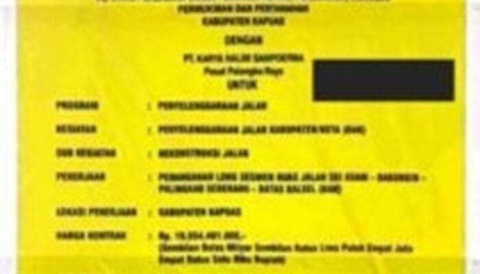 Diamon menjelaskan, proyek Dinas Pekerjaan Umum, Penataan Ruang, Perumahan, Kawasan Permukiman dan Pertanahan (PUPR-PKP) Kabupaten Kapuas tersebut dikerjakan oleh PT. KHS berdasarkan Surat Perjanjian Kontrak Gabungan Lumpsum dan Harga Satuan, dengan Nomor: 600.1.8/10/KTRK-BM/DAK/IV/DPUPRPKP/2024 tanggal 19 April 2024.